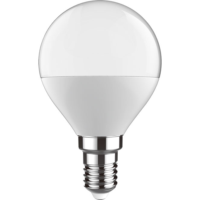 The light bulb EVOLUTION with a E14 (thin) base and a ball shape has a power consumption of 5W and a light output of 450 lumens. It uses LED technology and is classified with energy efficiency class A+. Its colour is White. The low light temperature of 3000K means a cosy lighting, due to its warm white luminous colour. This is traditionally used for living rooms, bedrooms and dining areas.