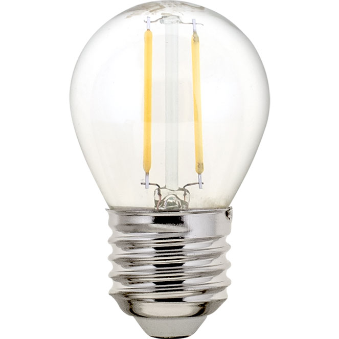The light bulb CLASSIC LED with a E27 (thick) base and a ball shape has a power consumption of 2W and a light output of 250 lumens. It uses LED technology and is classified with energy efficiency class A++ (Reg. 874/2012). Its colour is transparent. The medium light temperature of 4000K is ideal for kitchens, outdoors and similar, due to its cool white lighting. Keeping the classic style of a timeless elegancy.