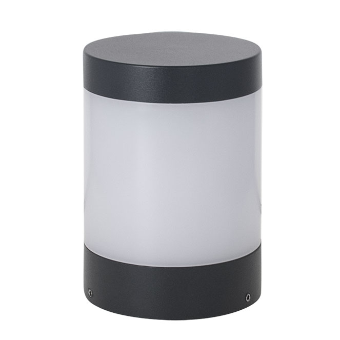 Within the Outdoor collection, we present to you the waterproof wall lamp BUGIO. The measures of this wall lamp model are of 14 cm high, 10 cm diameter, in anthracite (IP54). It offers a luminosity of 340 Lumens. In general, the high light temperature of 6500K results in a super white lighting, best used in industrial and outdoor spaces, garages, manufacturing sites and/or very wide spaces. Often referred to as a "daylight" luminous colour. This model contains 1 LED module of 7W. It is made of Aluminium+PC.
