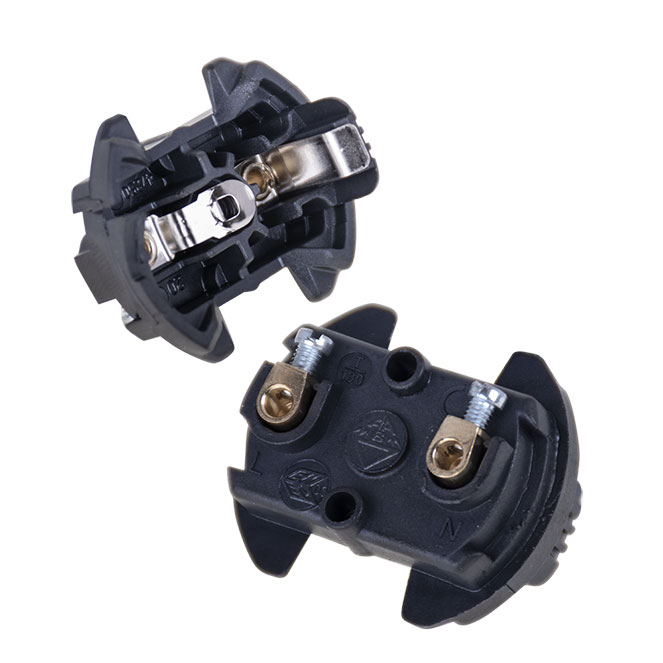 Pastilla de conexión para soporte E27 de 3 piezas, color negro con sistema de bloqueo antigiro. Temperatura nominal de 180°. Adecuado para cables rígidos y flexibles con sección 0, 5-2, 5 mm²