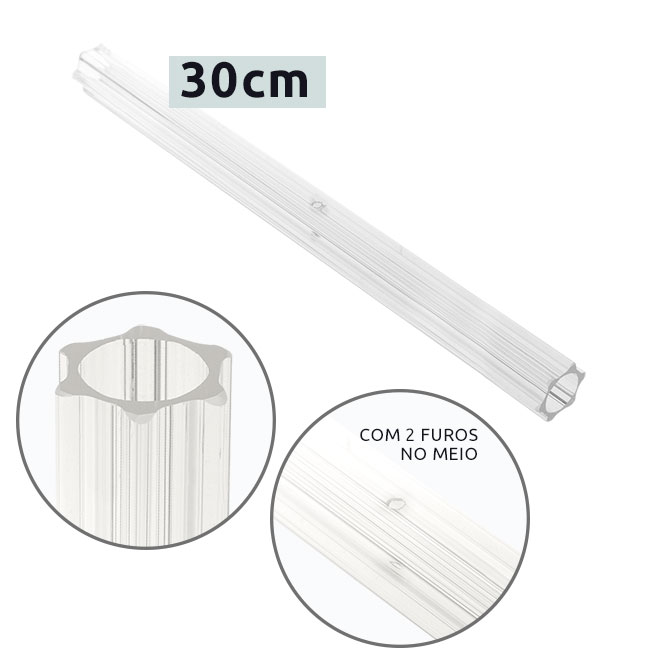 Tubo BOTI ondulado de cristal transparente, 2 agujeros al centro D.2,3xAl.30cm