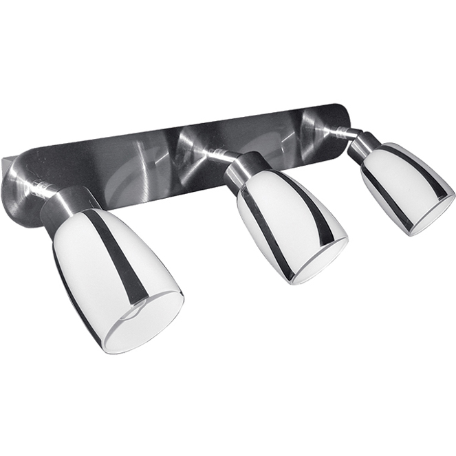 Dentro de la sección Focos y Regletas, les presentamos el artículo aplique BEJA. Las dimensiones de este modelo de aplique son de 42 cm de largo, 17 cm de ancho, 6 cm de alto, en niquel. Este modelo necesita 3 bombillas GU10.