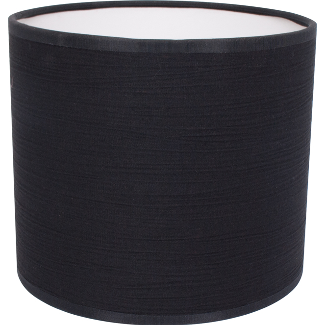 Dentro de la sección Pantallas, les presentamos el artículo pantalla ROMENO. Las dimensiones de este modelo de pantalla de formato redondo (con encaje E27, tela Sari) son de 14 cm de alto, 16 cm de diámetro, en negro.