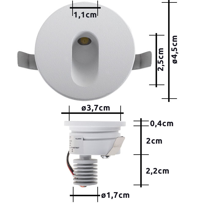 Apresentamos o artigo foco de embutir DIRAME, em branco. As medidas deste downlight de formato redondo são de 0,4 cm de altura e 4,5 cm de diâmetro. Conta com uma luminosidade de 60 Lúmens. A baixa temperatura de luz de 4000K traduz-se numa luminosidade em tons mais amarelos, quentes e confortáveis. Esta cor de luz é tradicionalmente usada em salas de estar, quartos de dormir e áreas de refeição. Este modelo contém 1 módulo LED de 1W.